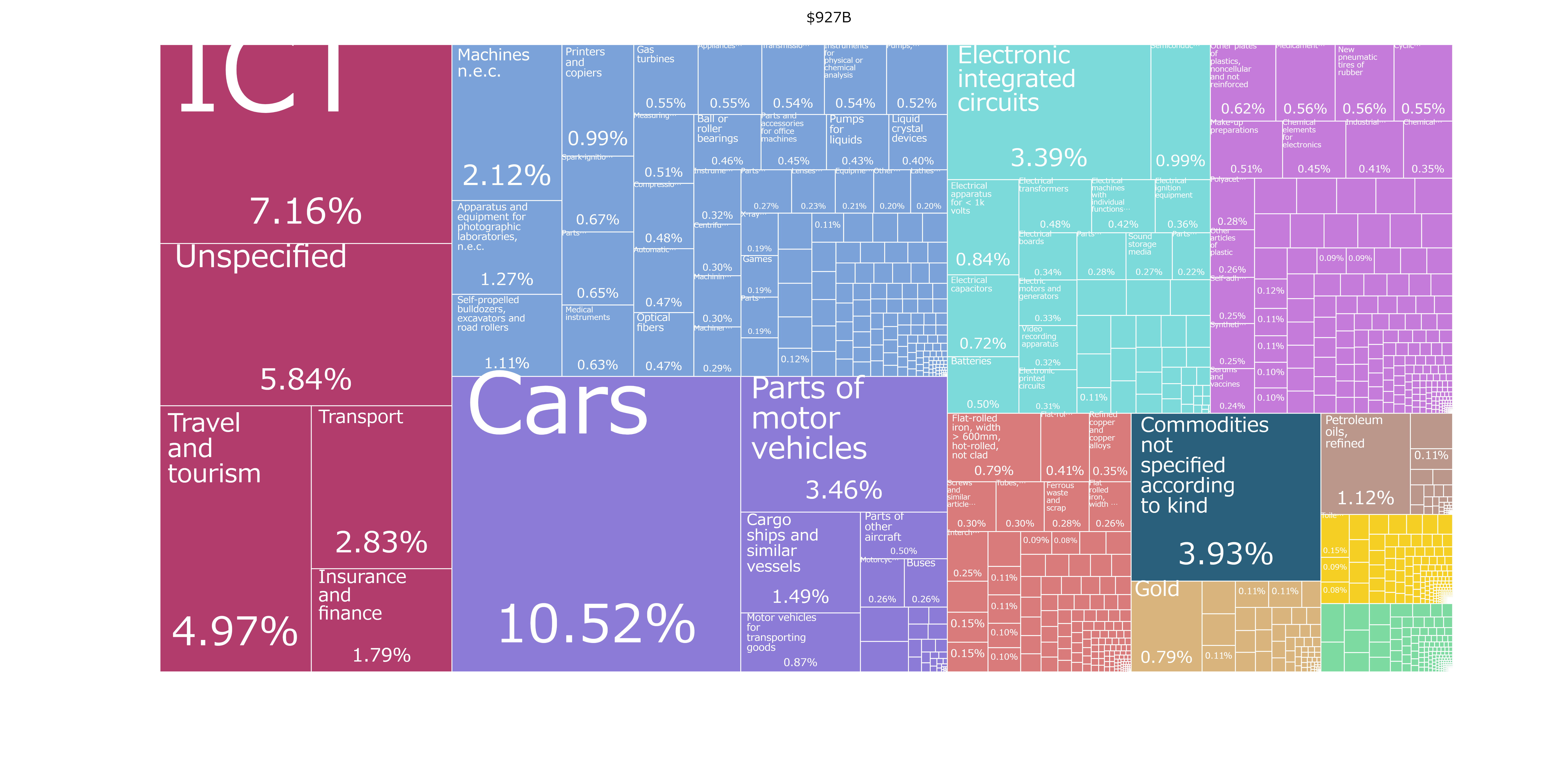 2019年にフランスは$849B(約90兆円)の製品やサービスを輸出しており、