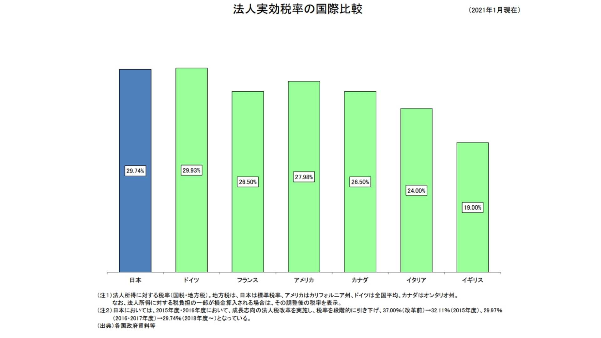 まだまだ日本の税率が主要国より少し高めに設定されていることがわかります。