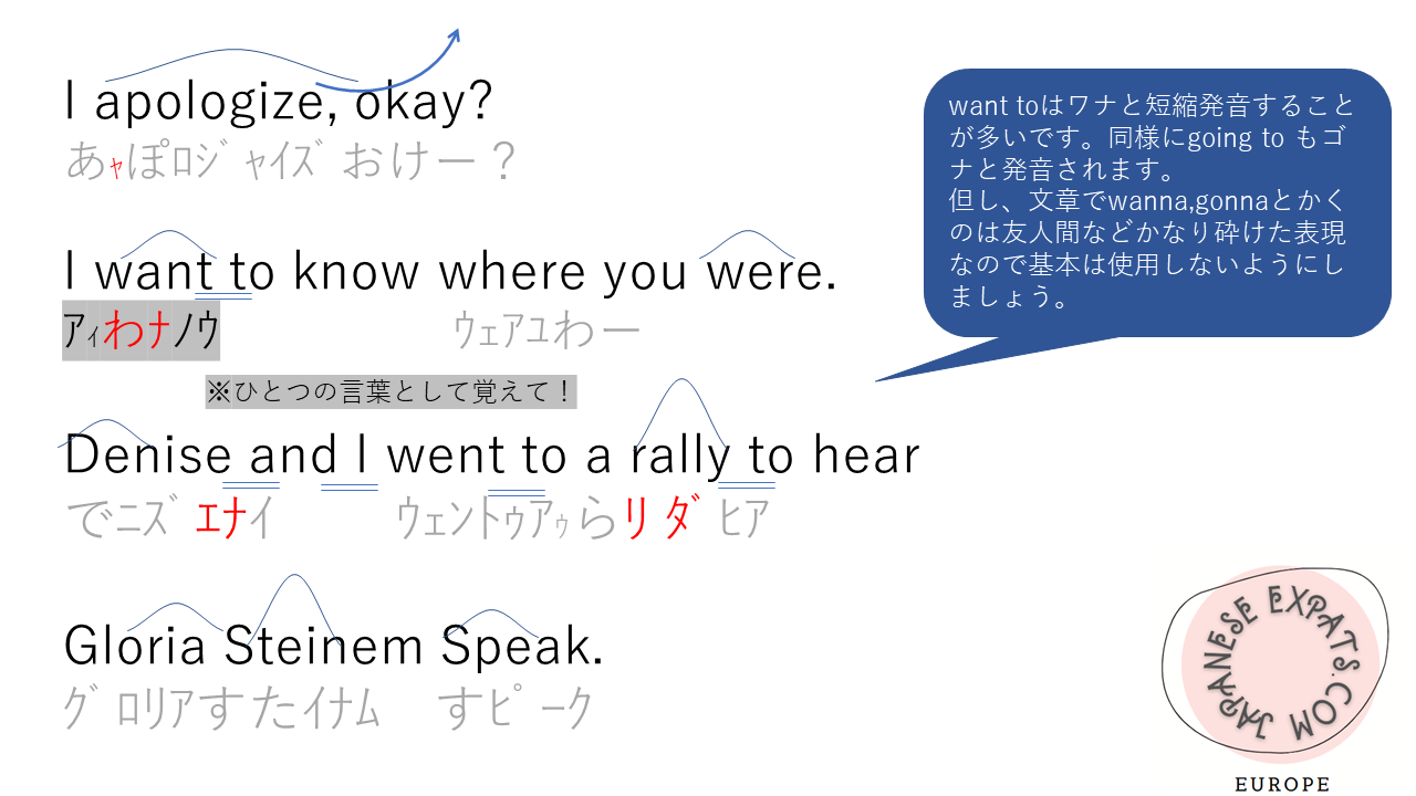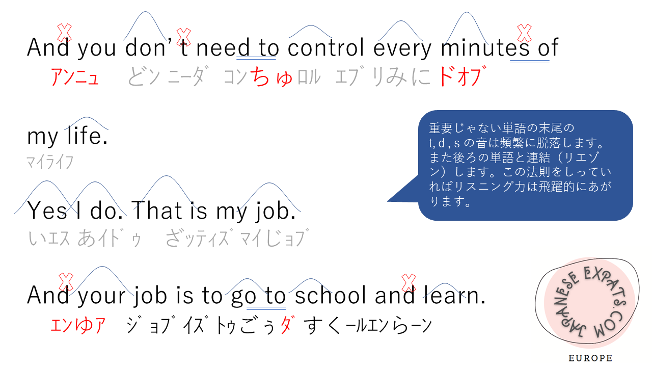 ・前後の単語とひっついている単語を確認する。(日本人が一番苦手なパート)